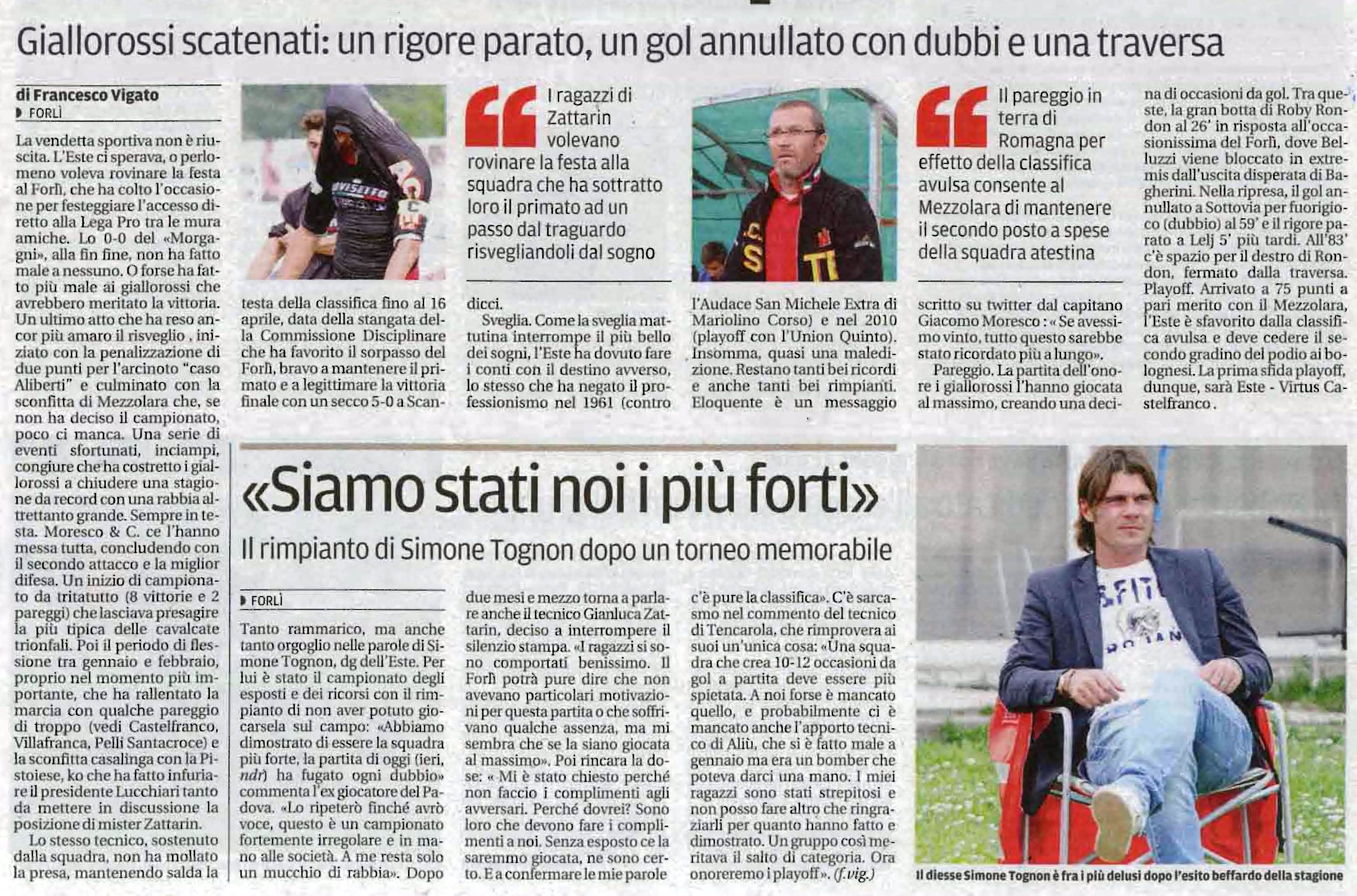 cala il sipario sulla stagione dell’Este. Ecco la pagina del Mattino di Padova.